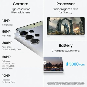 Galaxy AI and Now Brief - Enter the new era of mobile AI with a companion that stays one-step ahead of your needs. Let natural conversation guide you through everyday tasks without switching between multiple apps, while Now Brief keeps you updated with your schedule, reminders, battery status, and Energy Score, all within One UI. Gemini Live - Get real-time answers and ideas with Gemini Live. Chat freely, attach images, and prepare for presentations with responses that adapt to your style. Ultra Wide Camera - Capture razor-sharp details from Wide to Telephoto and even Ultra Wide. Whether shooting landscapes or zoomed-in portraits, the AI-enhanced ProVisual Engine and 200 MP camera deliver vivid colors with exceptional clarity. Showcased beautifully on immersive display.